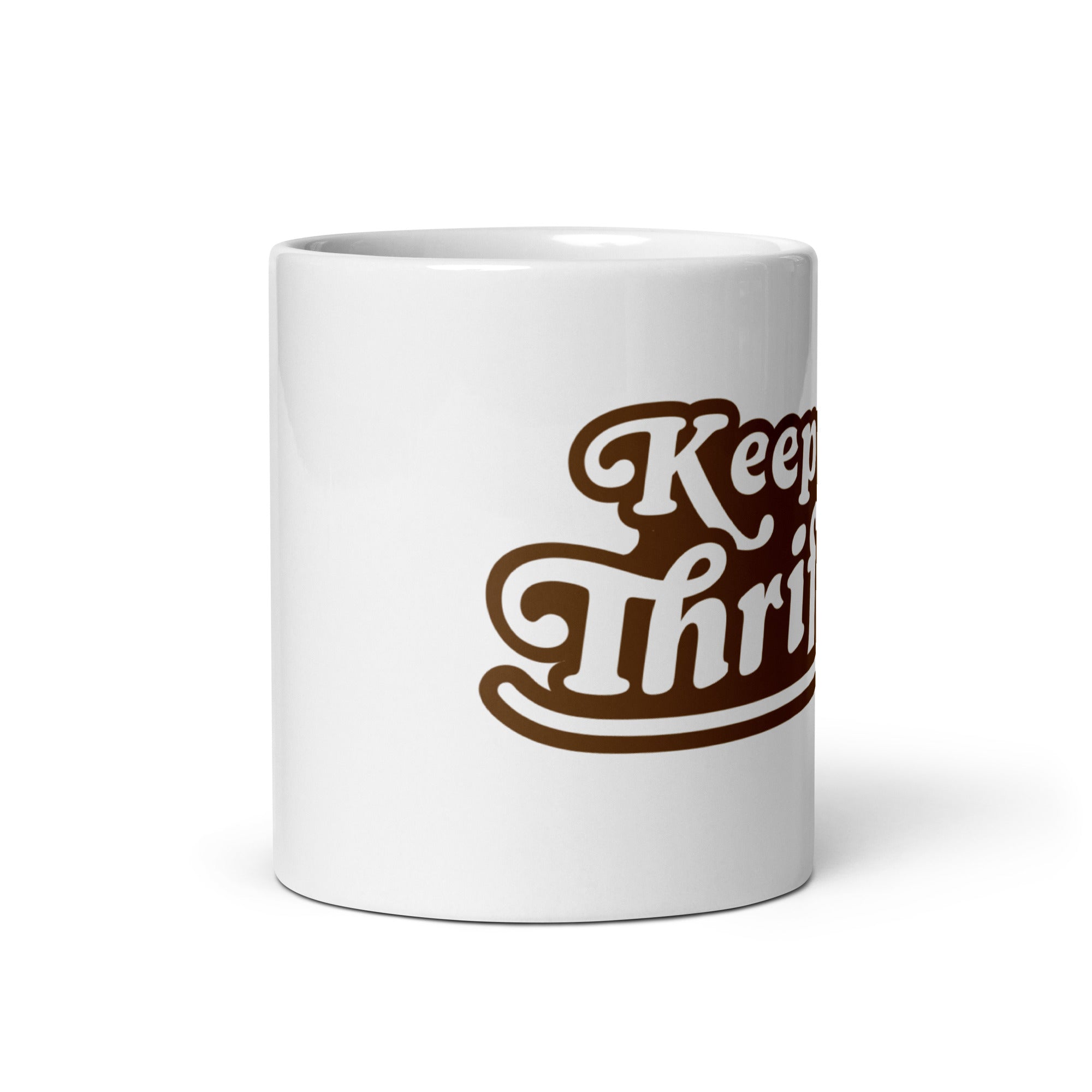 Enjoy that cup of joe with this retro-inspired Keep on Thriftin' Mug. It's sturdy and glossy with a vivid print that'll withstand the microwave and dishwasher.